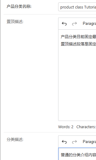 普通的分类介绍内容,可在分类描述内录入。分类描述是固定环绕在图片的左部和下部显示。如果没有图片,则与置顶描述作用一致。也以使用大部分的富文本格式,但注意不要与网站整体冲突。